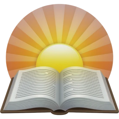 Open bible with sunrise behind it emoji