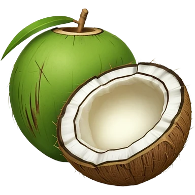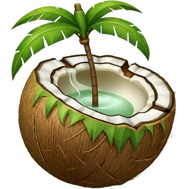 A cute capybara peeking out from inside a cracked open coconut shell emoji