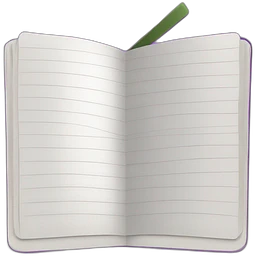 Create an emoji representing songwriting. The design should feature an open notebook or sheet music with visible lyrics between the musical notes, symbolizing the process of writing song lyrics. The text between the notes should be clearly visible. A pen or pencil should be placed near the notebook, indicating active writing. Optionally, include a single vintage microphone lying beside the notebook (not on the music notes) to add a creative touch. Use a harmonious color palette with warm and neutral tones. Do not include any emojis or smiley faces. Make the background transparent. emoji