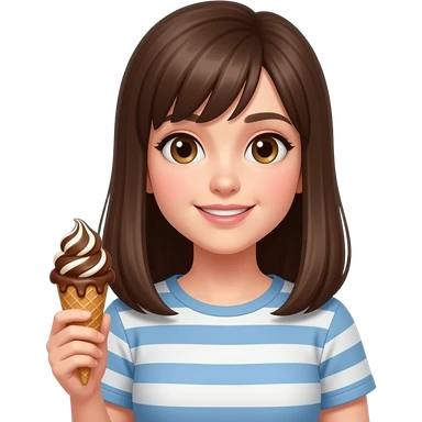 open straight brown hairs girl holding a ice cream with brown color scope and licking emoji | AI Emoji Generator