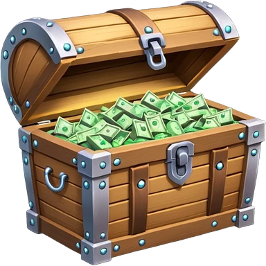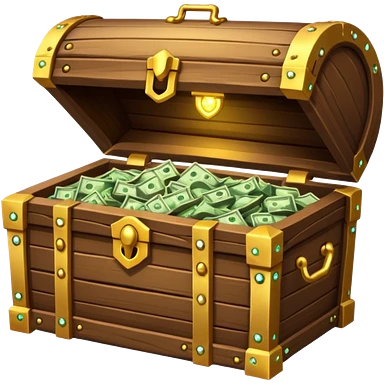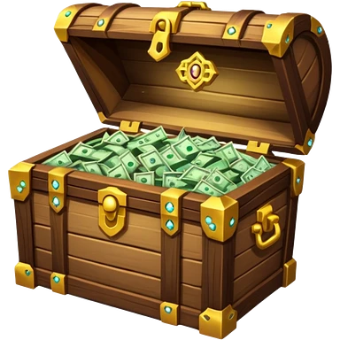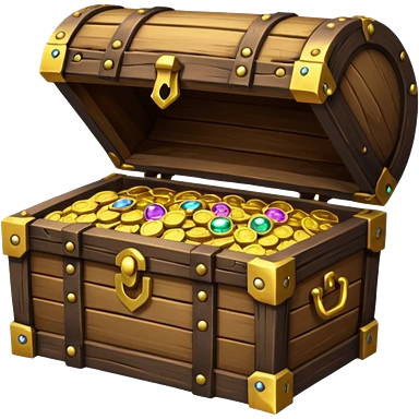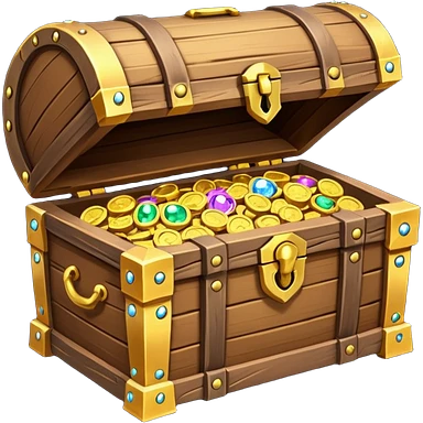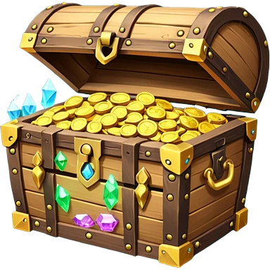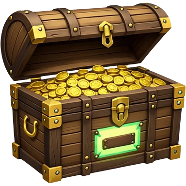 A wide, dark treasure chest with the lid open, showing gold coins emoji