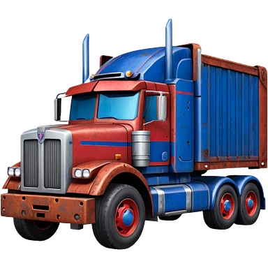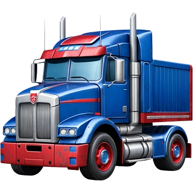 Optimus Prime in a battle pose, stylized emoji character, bold colors, metallic details emoji