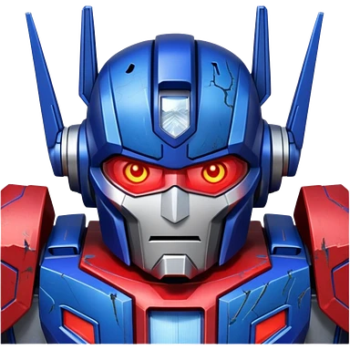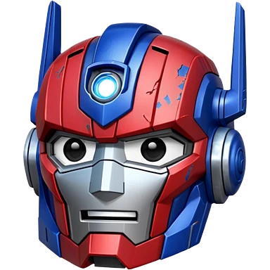 Optimus Prime emoji, apple style, simple and expressive, blue and red robot face with silver details, no text emoji