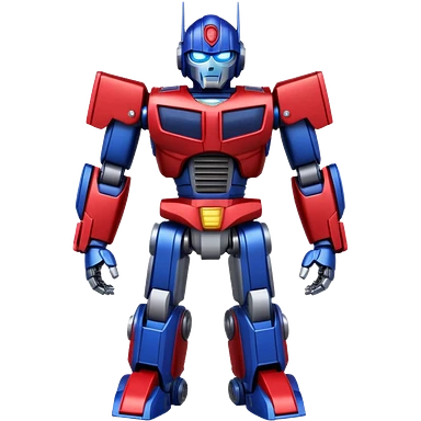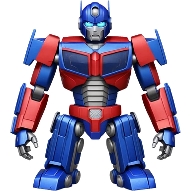 Optimus Prime emoji, apple style, full body, heroic pose, blue and red colors, no text emoji
