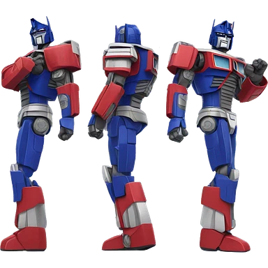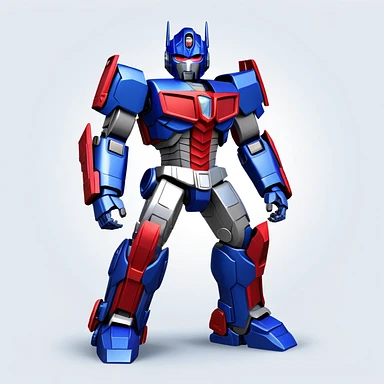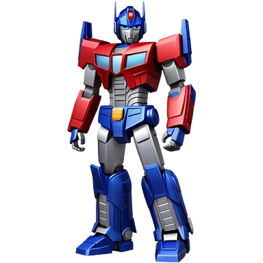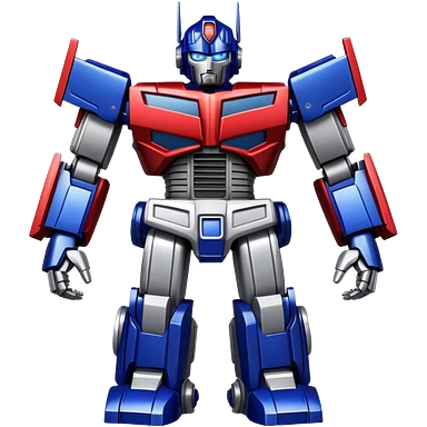 Optimus Prime emoji, apple style, full body, heroic pose, blue and red colors, no text emoji