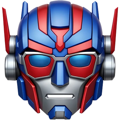 Optimus Prime emoji, apple style, simple and expressive, blue and red robot face with silver details, no text emoji