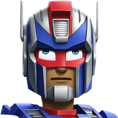 Optimus Prime as a robot emoji, blue and red color scheme, metallic details, heroic expression emoji