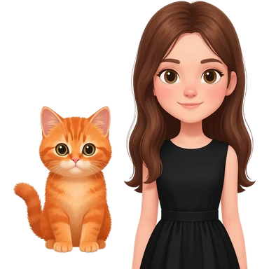 british Baby cat orange with girl long brown hair And black dress emoji