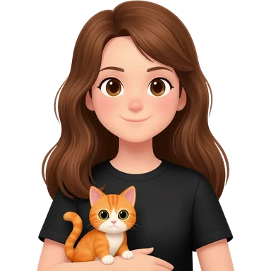 british Baby cat orange with girl long brown hair And black shirt emoji
