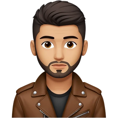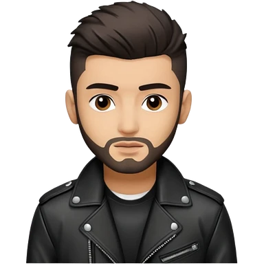 Generate an image of Zayn Malik looking effortlessly cool in a jean jacket, his black beard and hair impeccably styled, and donning a pair of trendy spectacles. emoji