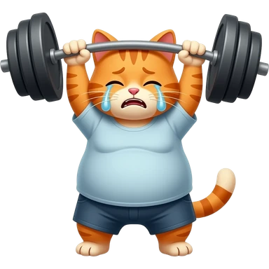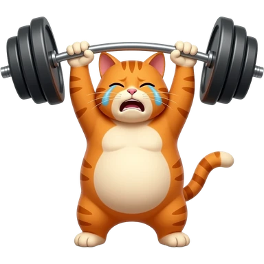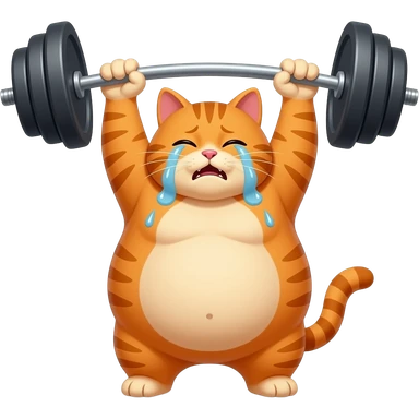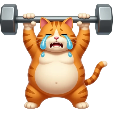Orange cat struggling to pick up a heavy bar because it's fat and ugly and it's crying emoji