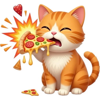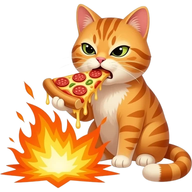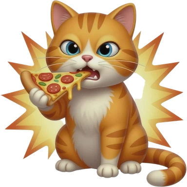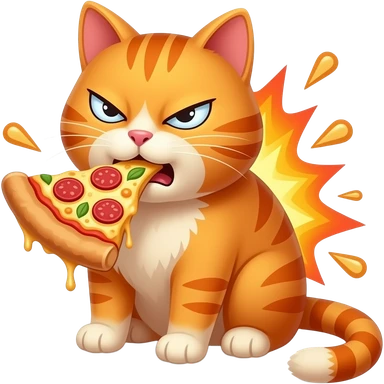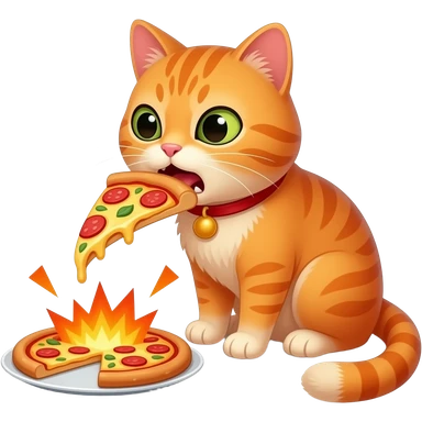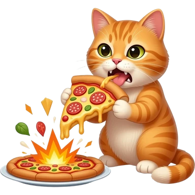 Orange cat eating pizza and making an ugly face while the pizza explodes emoji