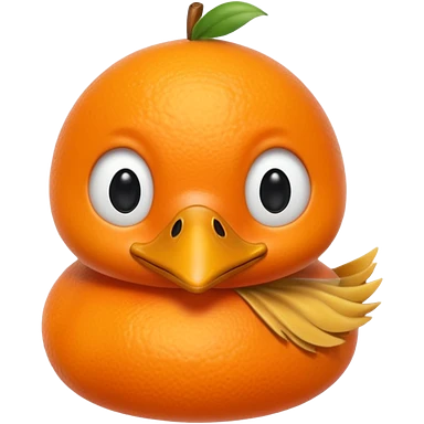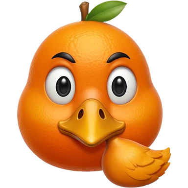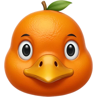 an orange fruit with duck beak and black dot eyes cartoon style unrealistick emoji