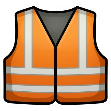 cartoon emoji of orange worker vest, thick outline, flat colors, simple 2D, minimal, clean background, sticker style, no 3D emoji