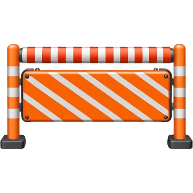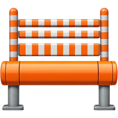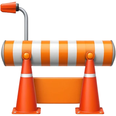Flat emoji-style icon of a boom barrier. Orange control box. Red and white striped barrier arm coming out of the box. Box is solid orange only, arm is red-white only. NOT gates, NOT fence, NOT fully red-white barrier. emoji