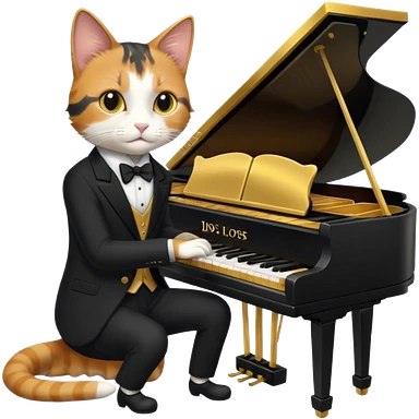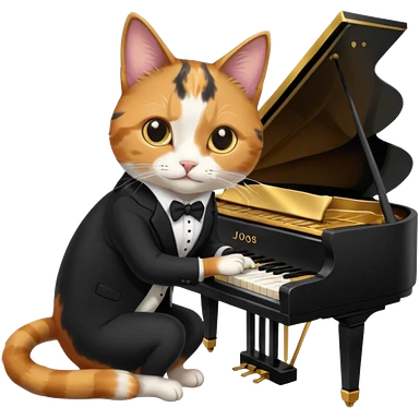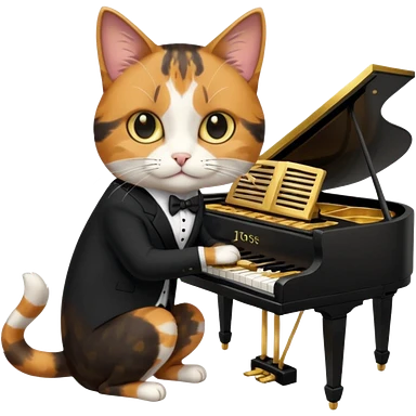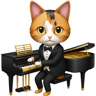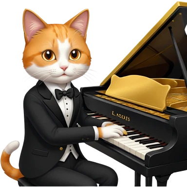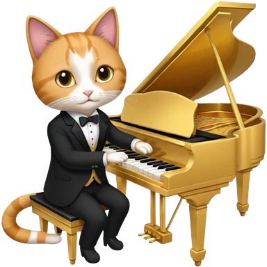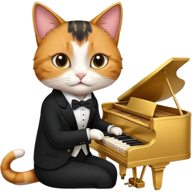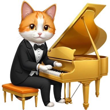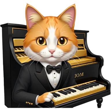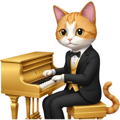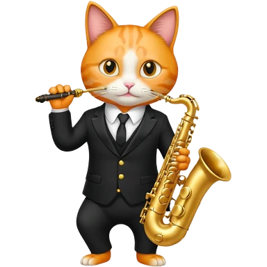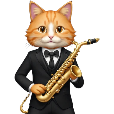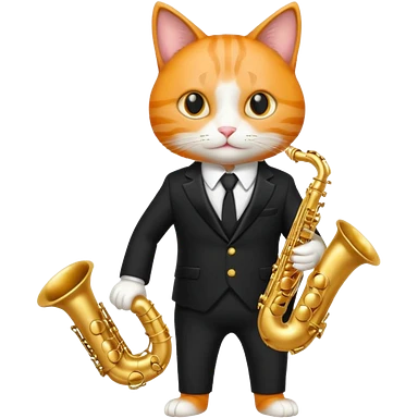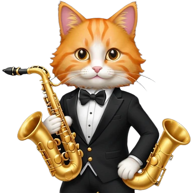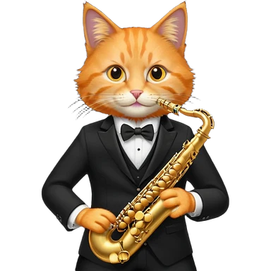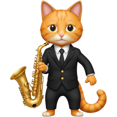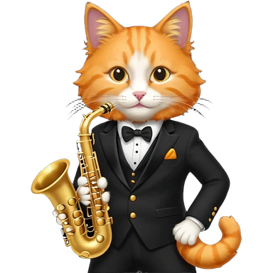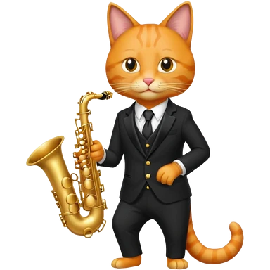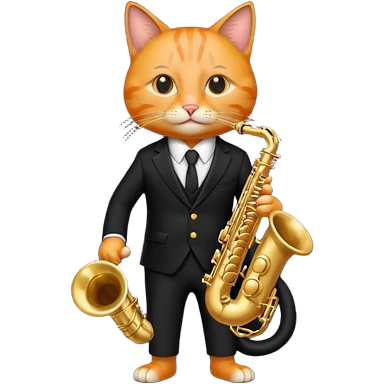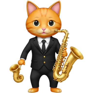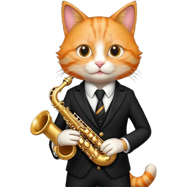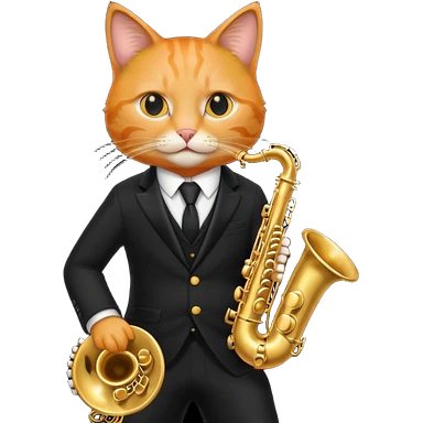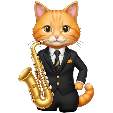 orange cat play gold saxophone, wear black suit emoji | AI Emoji Generator