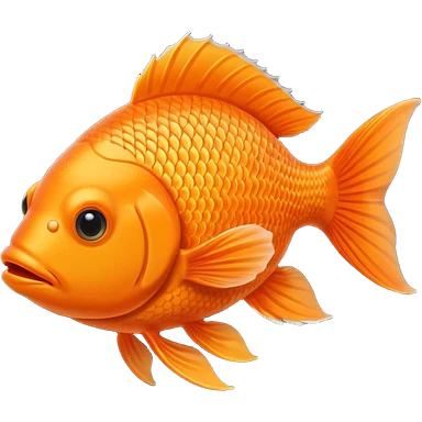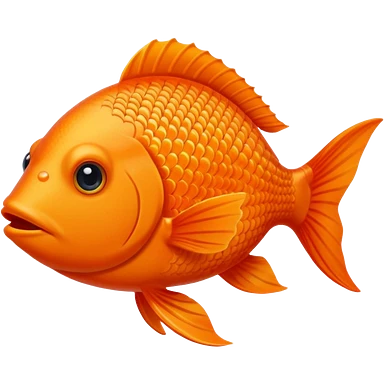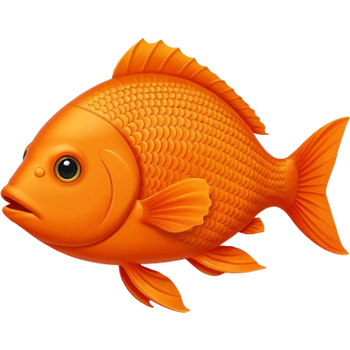 ridiculously derpy bright orange fish with wonky eye and goofy smile with drool, super friendly but extremely stupid looking, perfect flat side profile facing right, exactly 90 degrees, one eye visible emoji