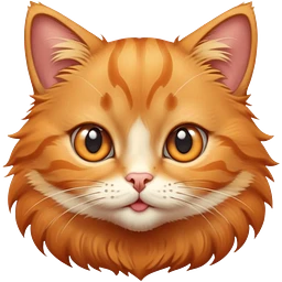 cute cat emoji features a round face with large, expressive eyes and a cheerful smile. Its warm orange fur has subtle stripes, and its perked-up ears have a pink hue. With a fluffy, curled tail and prominent whiskers emoji