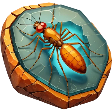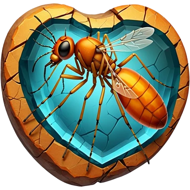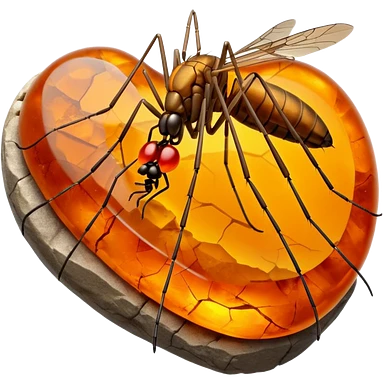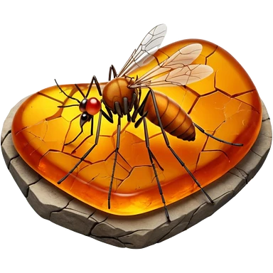 3D render of Amber Mosquito, embedded in a chunk of rough sedimentary rock, cracked stone texture, ancient fossil aesthetic, trapped inside a glowing translucent orange amber gem, matte dry finish, Apple emoji style, isolated on white background --v 6.0 emoji