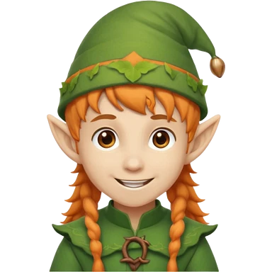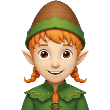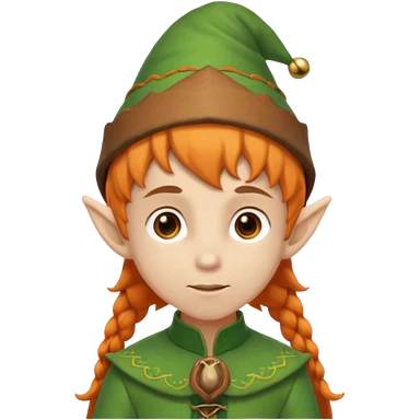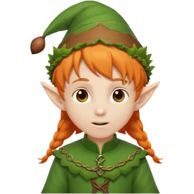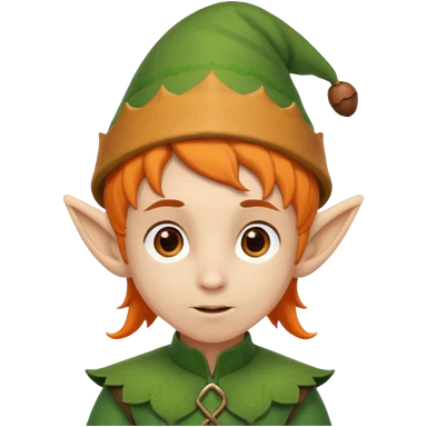 Orange Haired Elf, Elf boy with orange ponytail and acorn hat emoji | AI Emoji Generator
