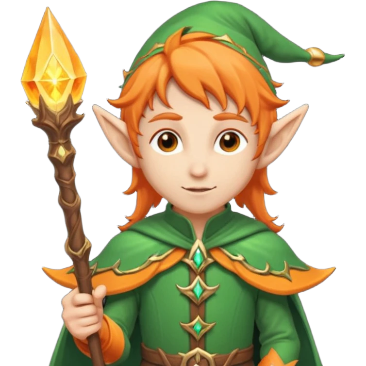 Orange Haired Elf, Mage elf with glowing orange staff emoji | AI Emoji Generator