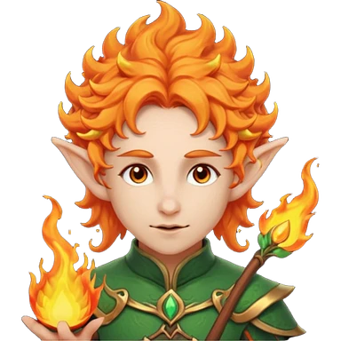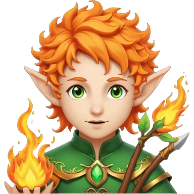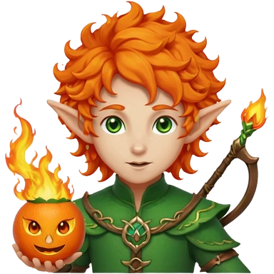 Orange Haired Elf, old Mage elf with glowing orange staff emoji | AI Emoji Generator