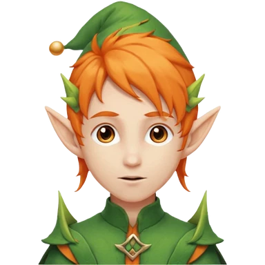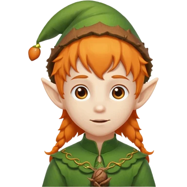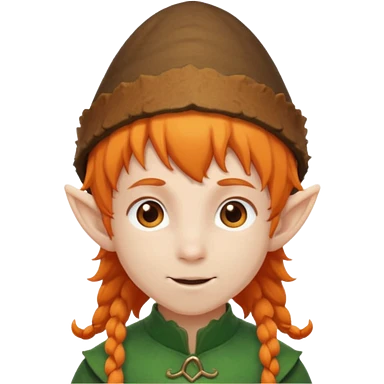 Orange Haired Elf, Elf boy with orange ponytail and acorn hat emoji