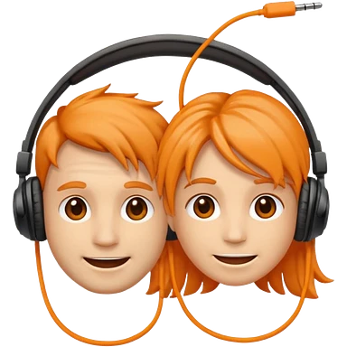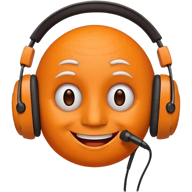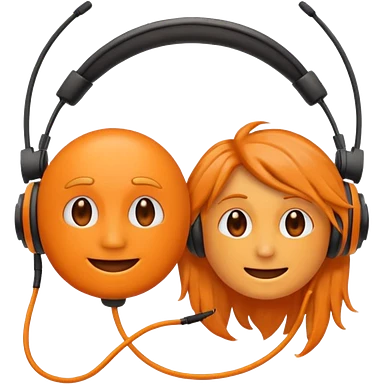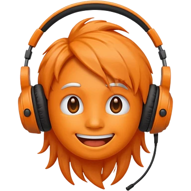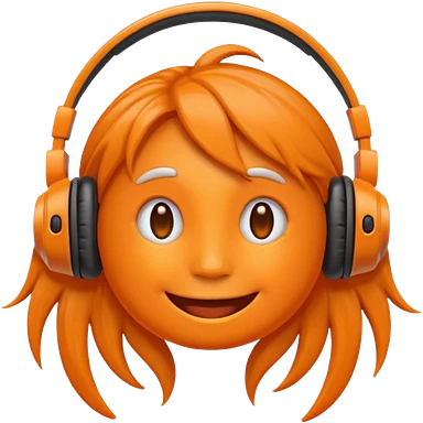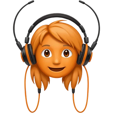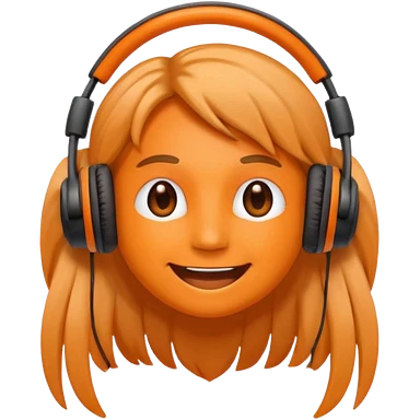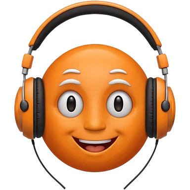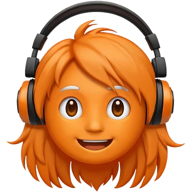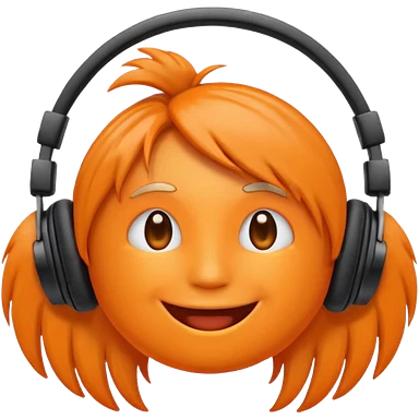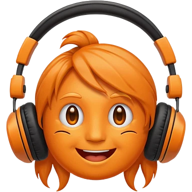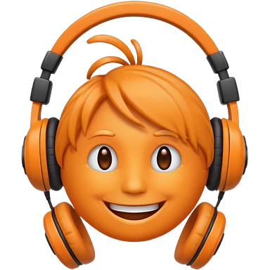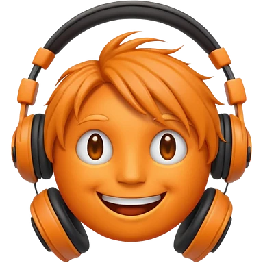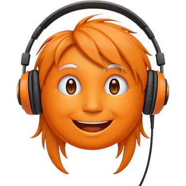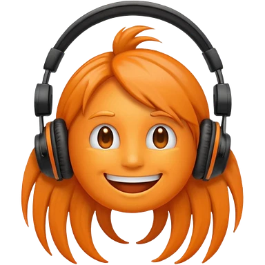 Orange happy face emoji with a couple of hair,headphones,and antennas. emoji | AI Emoji Generator