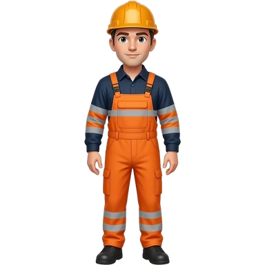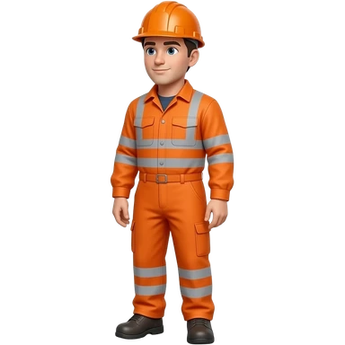 engineer standing full hi vis orange overalls with sleeves, no hard hat, looking left emoji