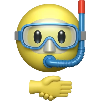 A regular yellow circle face emoji but it has scuba goggles and snorkeling gear on its face only the face and it has a handout placed horizontally, like reaching out for a handshake emoji