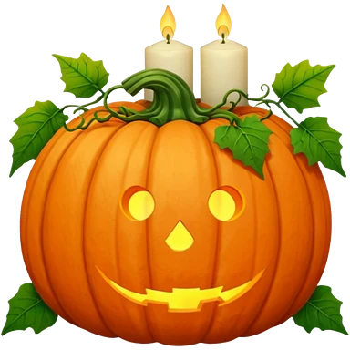 Huge big pumpkin, vines, leaves, candles, autumn vibes aesthetics emoji
