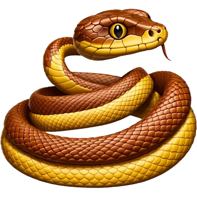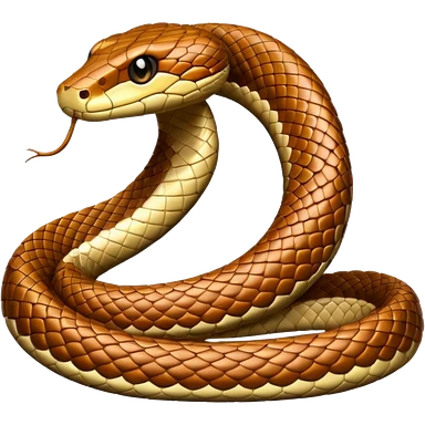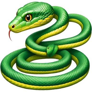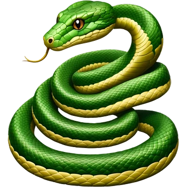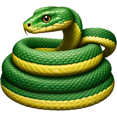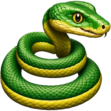 Tiger python coiled up on the ground, blending with the dense jungle foliage. Its distinct orange and black stripes stand out against the vibrant green of leaves and plants. Sunlight filters through the trees, highlighting the snake's patterned scales. Transparent background. emoji