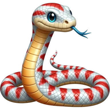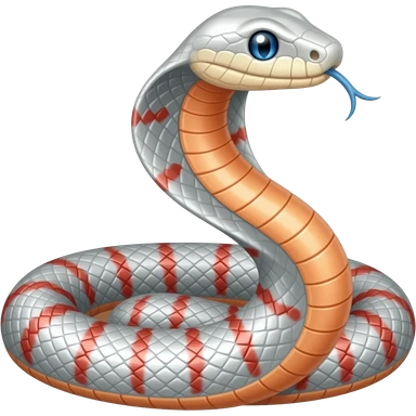 Shiny light Silver snake with red stripes, with orange underside and blue tongue emoji