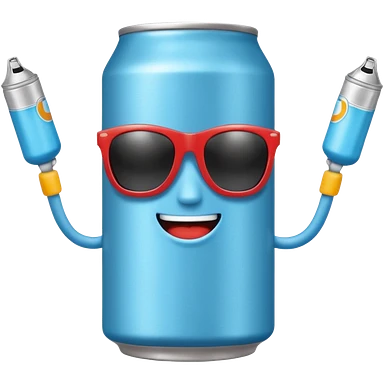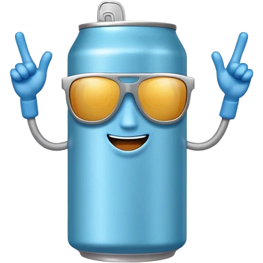 A soda can with a light blue color, with legs, arms, and a face. It can be seen wearing sunglasses emoji