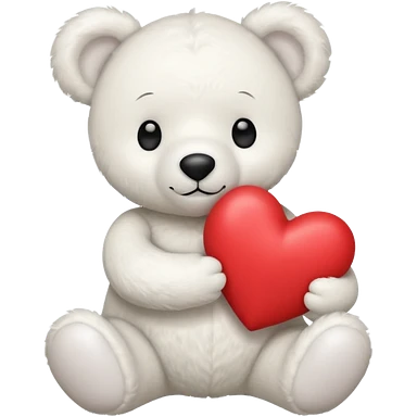 Light coloured fur. With Orange eyes teddy bear wearing a beige sweater with a red heart in the middle. emoji