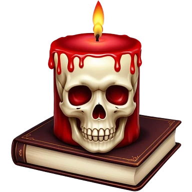 skull candle on black occult books dark red emoji