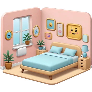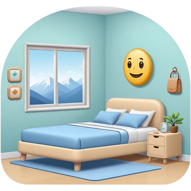 organized bedroom, olive green walls, wood bed and closet emoji | AI Emoji Generator