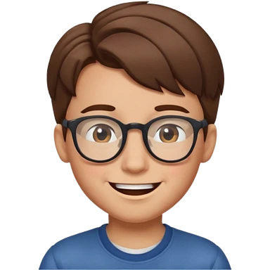 un ragazzo con gli occhiali e capelli in avanti e marroni che fa l'occhiolino ed è felice emoji