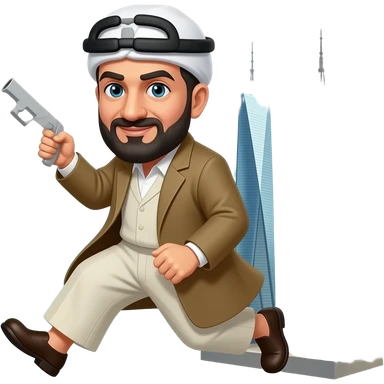 Osama bin laden pointing water gun in an airplane pilot seat emoji