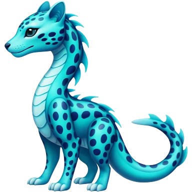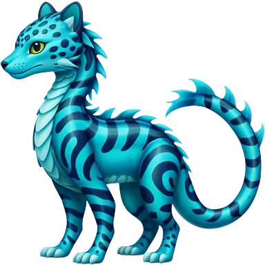 Bioluminescent Neon-Cyan Ripple-Patterned Soft-Scaled Aquatic Fantastical Liepard-Amaura-Manokit-Sergal-Samurott-fusion creature (full body) emoji