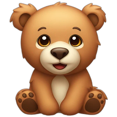 Oso de peluche beige, con nariz café, cuerpo flacucho y pañal azul claro, con un volado azul claro y amarillo claro emoji
