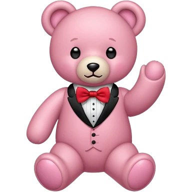 Osito blanco cuerpo completo, circulo en estomago y orejas rosa, guiñando el ojo izquierdo y sonriendo con brazos levantados. emoji