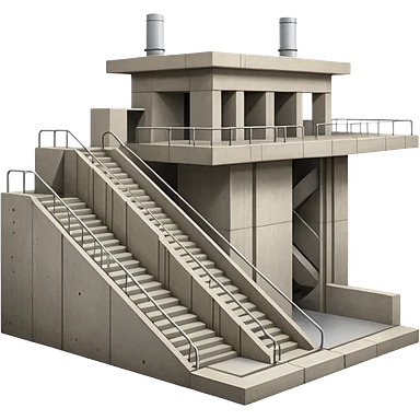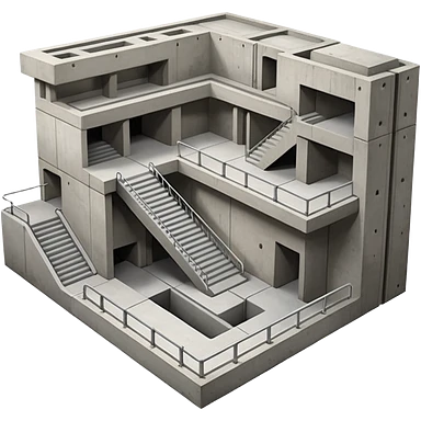 Cutaway view showing underground structure. Concrete walls, rectangular station box, visible staircases going down, platform edges, smooth geometry. No people, no text. Apple-style design emoji