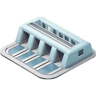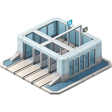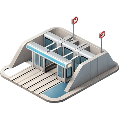 Isometric underground metro station, Apple-style minimalist 3D illustration, smooth surfaces, soft lighting, pastel blue and gray palette, clean geometry, cutaway underground view, no people, no labels, modern UI illustration. emoji