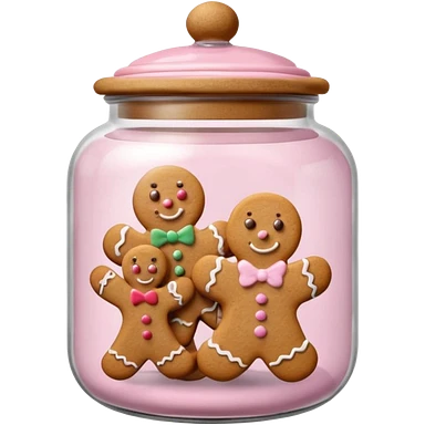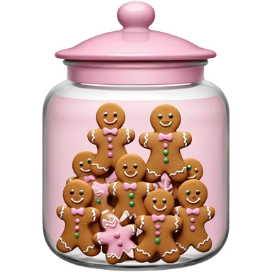 Realistic glass cookie jar with light pink lid full of gingerbread cookies isolated emoji