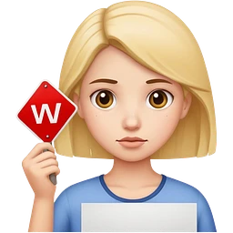 Just a head, blonde hair with lowlights in a ponytail, blue eyes, some freckles, a little older female ready to get some tasks done at work, no bod emoji
