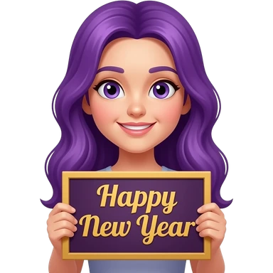girl with long purple hair with a happpy new year sign emoji