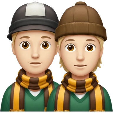 two headed person with one head wearing a loggers hat and the other a football scarf emoji
