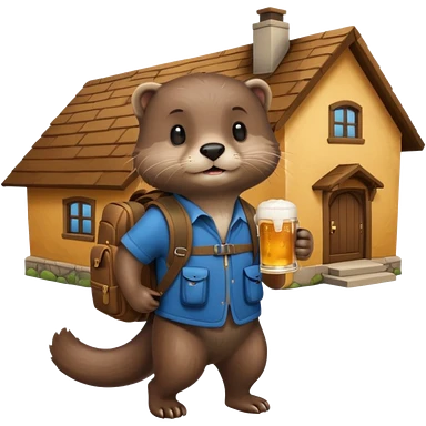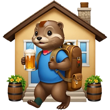 otter with a backpack holding a beer entering a house emoji | AI Emoji Generator