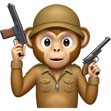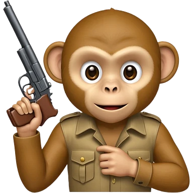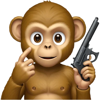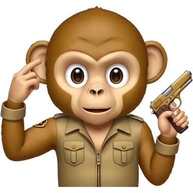 “A monkey covering his mouth with one hand and holding a gun to his head with the other hand.” emoji